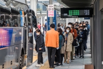 셔틀버스 기다리는 서울 시내 대형 종합병원 진료 환자와 이용객들