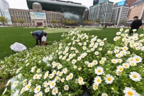 한반도 모양 '평화의 꽃밭' 조성 작업