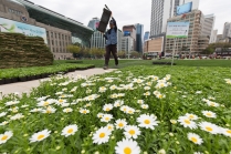 한반도 모양 '평화의 꽃밭' 조성 작업