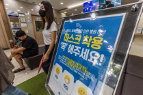 코로나19 확산으로 병원 내 마스크 착용 권고문 스케치