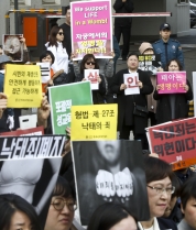 헌재 앞 낙태죄 불합치 관련 기자회견