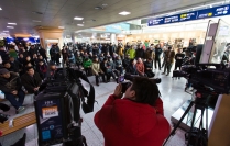박근혜 대통령 탄핵 표결 TV 시청하는 시민들