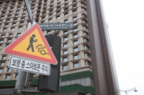 보행중 스마트폰 사용금지 표지판