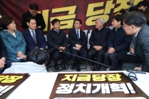 한병도 더불어민주당 원내대표, 진보4당 정치개혁 천막농성장 방문