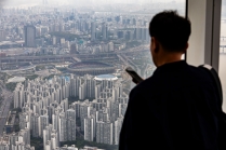 롯데월드타워 전망대 서울스카이에서 바라본 서울 시내 아파트 단지