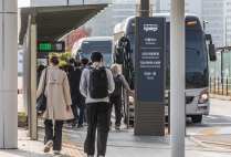셔틀버스 기다리는 서울 시내 대형 종합병원 진료 환자와 이용객들