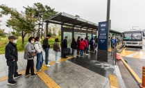 셔틀버스 기다리는 서울 시내 대형 종합병원 진료 환자와 이용객들