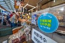 청량리 종합시장 민생회복 소비쿠폰 안내문 스케치