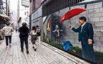 이재명 더불어민주당 대선후보와 윤석열 국민의힘 대선후보 벽화 스케치