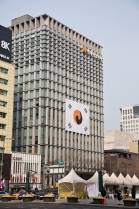 광화문 일대에 걸린 대형 태극기 스케치