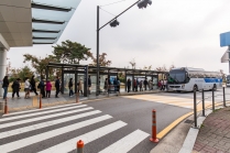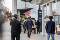 셔틀버스 기다리는 서울 시내 대형 종합병원 진료 환자와 이용객들