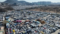 송도 수출단지에 빼곡히 주차된 중고차들