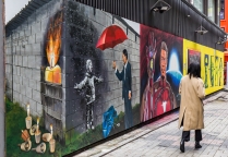 이재명 더불어민주당 대선후보와 윤석열 국민의힘 대선후보 벽화 스케치