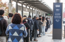 셔틀버스 기다리는 서울 시내 대형 종합병원 진료 환자와 이용객들