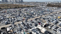 송도 수출단지에 빼곡히 주차된 중고차들