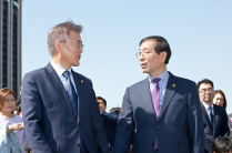 광화문 광장 걷는 문재인 후보와 박원순 시장