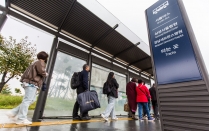 셔틀버스 기다리는 서울 시내 대형 종합병원 진료 환자와 이용객들