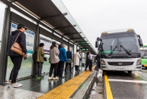 셔틀버스 기다리는 서울 시내 대형 종합병원 진료 환자와 이용객들