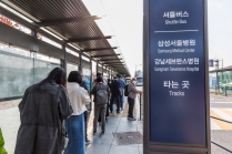 셔틀버스 기다리는 서울 시내 대형 종합병원 진료 환자와 이용객들