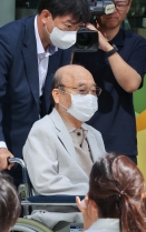 휠체어 타고 김건희 특검에 출석하는 이봉관 회장