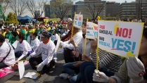 아이쿱(icoop) 생협 조합원들과 생산자들의 GMO완전표시제 요구 시위