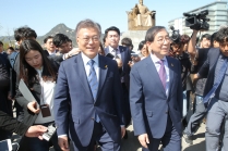 광화문 광장 걷는 문재인 후보와 박원순 시장
