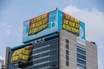 전국민주노동조합총연맹(민주노총) 공공운수노조 화물연대 소속 조합원 하이트진로 본사 옥상 점거 농성