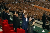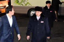 북한선수단 강릉선수촌 입촌 웰컴센터 앞