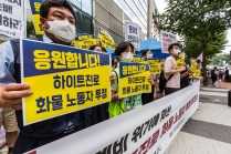 전국민주노동조합총연맹(민주노총) 공공운수노조 화물연대 소속 조합원 하이트진로 본사 옥상 점거 농성