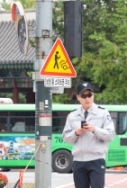 보행중 스마트폰 사용금지 표지판