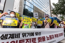 전국민주노동조합총연맹(민주노총) 공공운수노조 화물연대 소속 조합원 하이트진로 본사 옥상 점거 농성