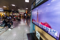 북한 미사일 관련 뉴스 시청하는 시민들