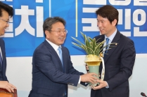 대통령 축한 난 받는 이인영 더불어민주당 신임 원내대표