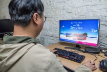 강원도 강릉 가뭄 피해 후원을 위해 고향사랑기부제 홈페이지 보는 모습 이미지