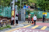 초등학교 등교길 경찰 순찰 스케치