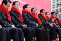 뮤지컬 '금강 1894' 리셉션 참석한 이재명, 이해찬