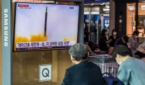 북한 미사일 관련 뉴스 시청하는 시민들