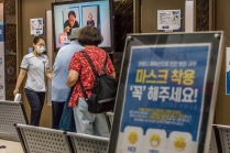 코로나19 확산으로 병원 내 마스크 착용 권고문 스케치