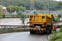 폭우에 범람한 중랑천과 통제된 동부간선도로