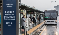 셔틀버스 기다리는 서울 시내 대형 종합병원 진료 환자와 이용객들
