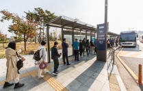 셔틀버스 기다리는 서울 시내 대형 종합병원 진료 환자와 이용객들