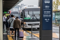 셔틀버스 기다리는 서울 시내 대형 종합병원 진료 환자와 이용객들