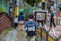 초등학교 등교길 경찰 순찰 스케치