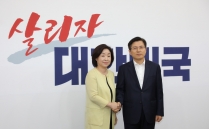 정의당 심상정 신임대표, 자유한국당 예방