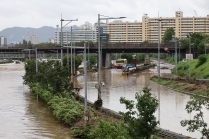 폭우에 범람한 중랑천과 통제된 동부간선도로