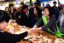 안철수 부인 김미경 교수, 망원시장 방문