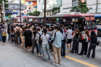 퇴근길 광역버스 정류장 스케치